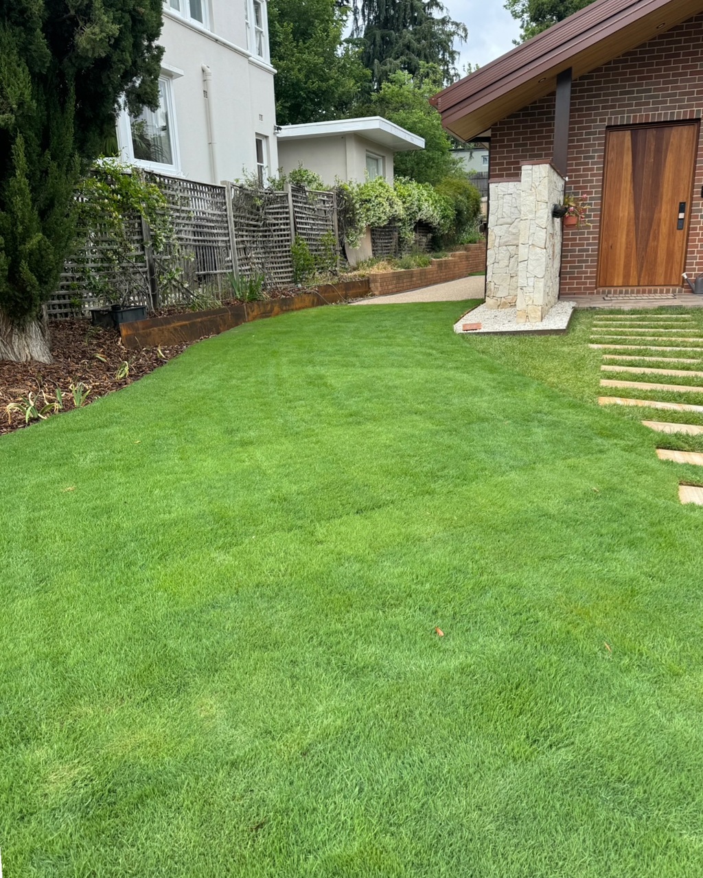 A new grass to our repertoire means we're very excited for the possibilities of this cool climate grass. We give Bent grass here on the farm the same maintenance as our other cool climate blends like Canberra blend, apart from mowing it shorter! Its self-repairing properties should mean that it can mend some wear and tear, ensuring that your lawn remains pristine and inviting throughout all seasons.