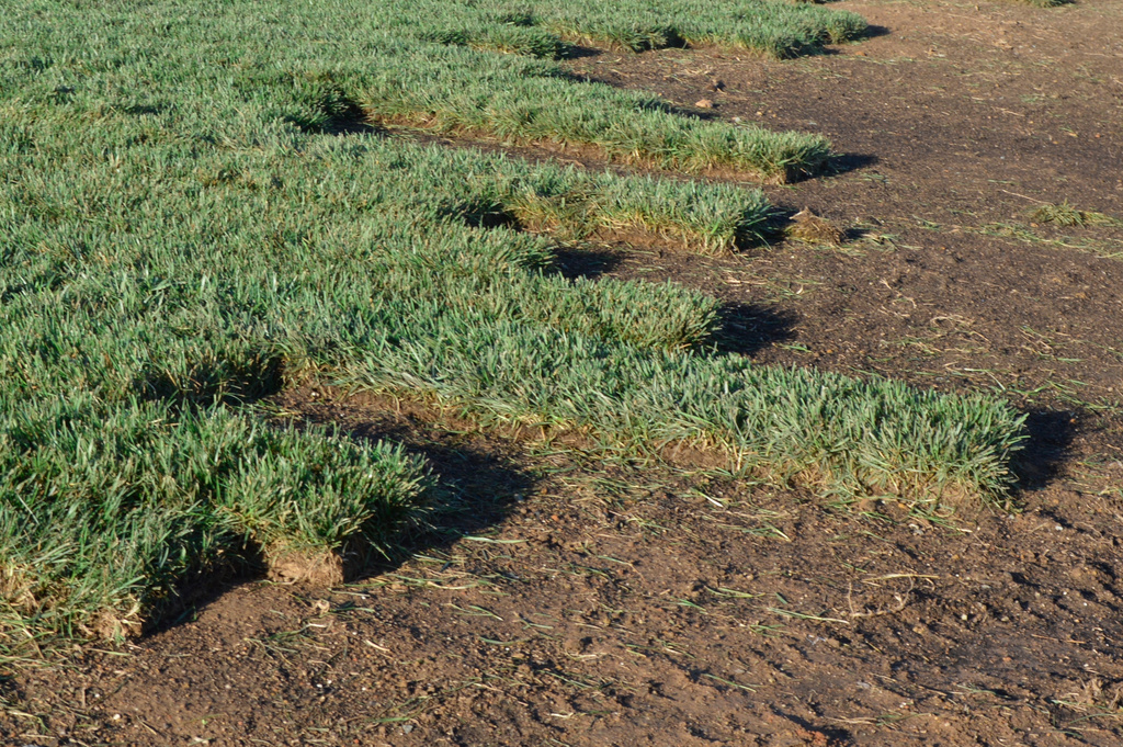 Lay the Canturf rolls in a staggered pattern (like bricks), as close together as possible making sure there is no over lap nor any soil from the edges of the rolls visible. This helps to prevent drying out along the seams of the roll. Any gaps should be plugged with Canturf, not filled with soil.